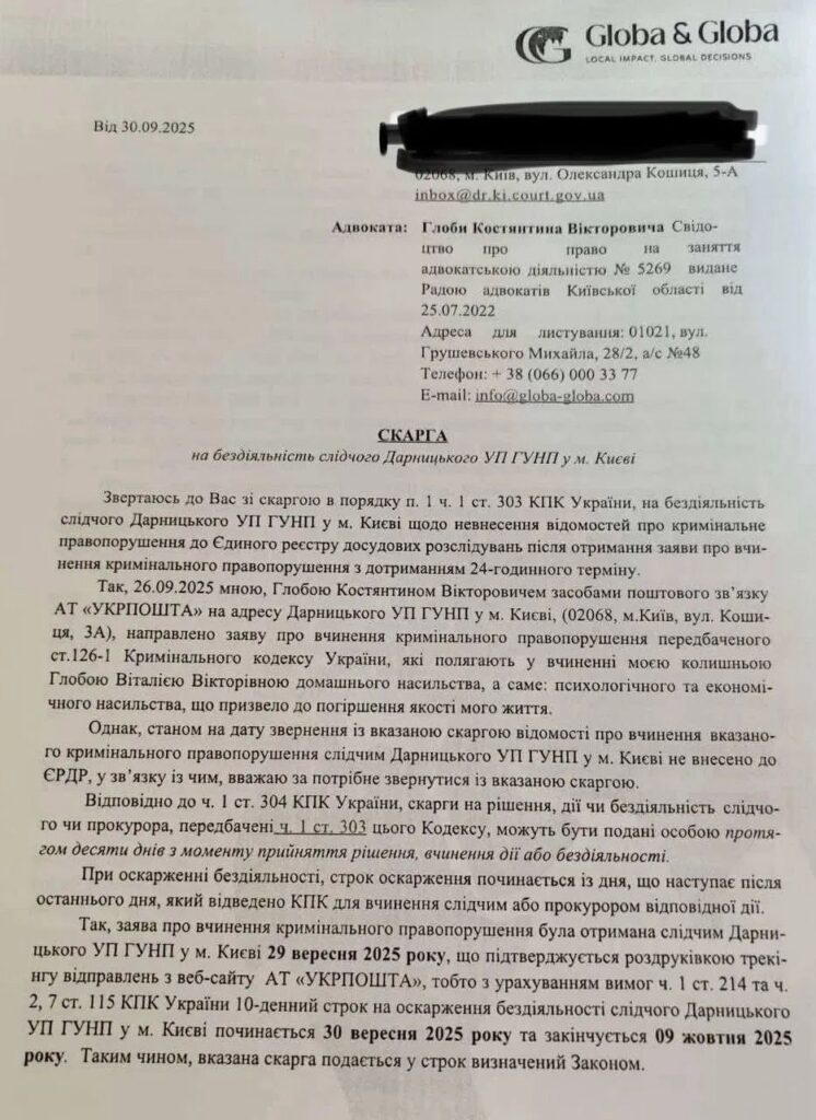 Адвокат Костянтин Глоба подав скаргу до Дарницького районного суду міста Києва на бездіяльність слідчого Дарницького УП ГУНП у місті Києві.