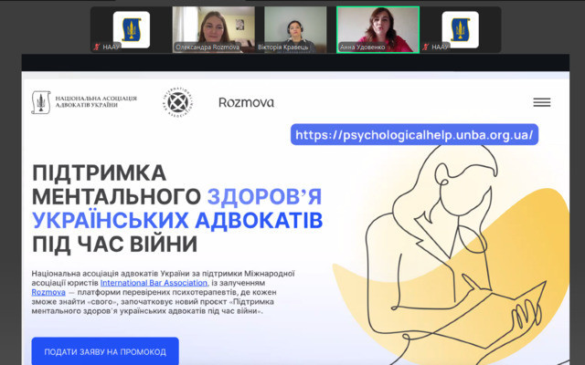 Захід відбувся за ініціативи Національної асоціації адвокатів України та за підтримки Міжнародної асоціації юристів (IBA) у межах проекту «Підтримка ментального здоров’я українських адвокатів під час війни», інформує НААУ.