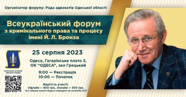 25 серпня 2023 року буде проведено Форум з кримінального права та процесу імені Й.Л. Бронза.