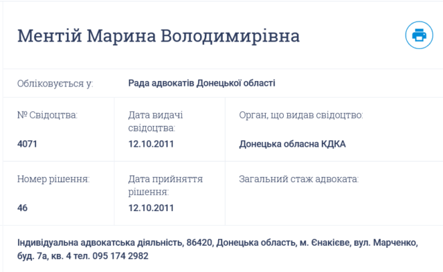 Через зайняття посади в так званому судовому органі, створеному на тимчасово окупованій території, адвокату Марині Ментій оголошено підозру у колабораційній діяльності.