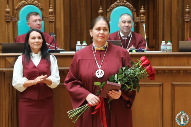 На спеціальному пленарному засіданні Конституційного Суду України суддя Суду Алла Олійник склала присягу та засвідчила її текст особистим підписом.
