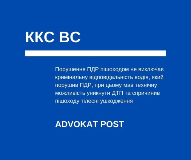 У випадку, коли ПДР порушені кількома учасниками ДТП (зокрема, водієм та пішоходом), до кримінальної відповідальності притягається лише та особа, протиправні дії якої перебували у причинному зв’язку з наслідками, що настали. Протиправна поведінка іншого учасника ДТП у цьому випадку є умовою спричинення відповідних наслідків та не впливає на підставу кримінальної відповідальності особи, у діях якої встановлено причинний зв’язок з наслідками, що настали.
