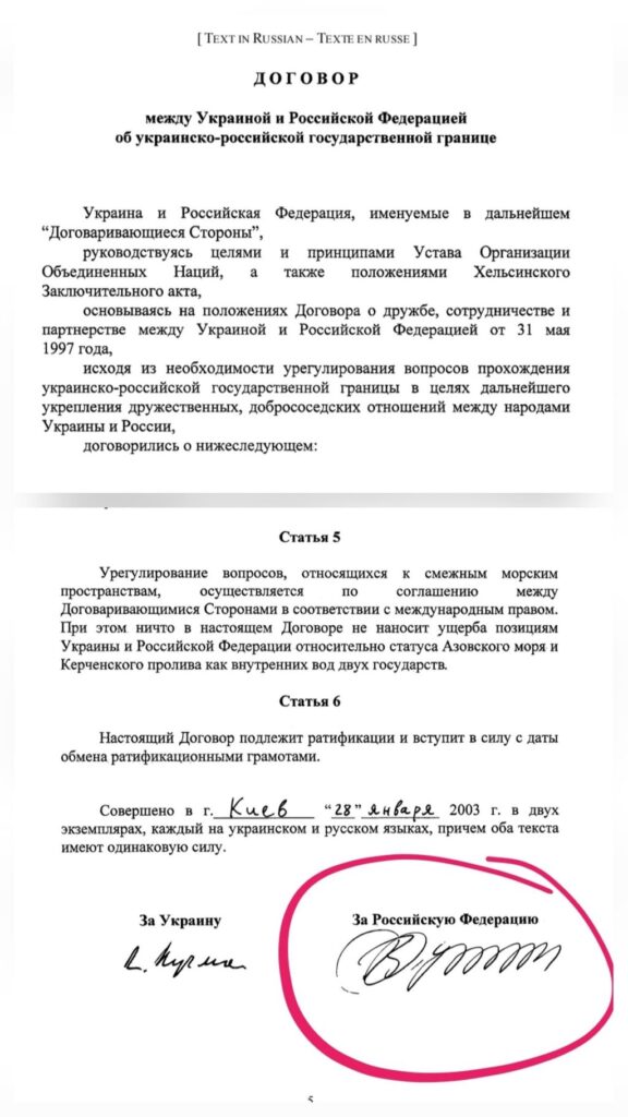“Ця угода була ратифікована держдумою РФ і в 2010 році навіть було проведено демаркацію кордону (накреслено лінію на землі). Ця угода про кордон – досі чинна і не денонсована РФ.