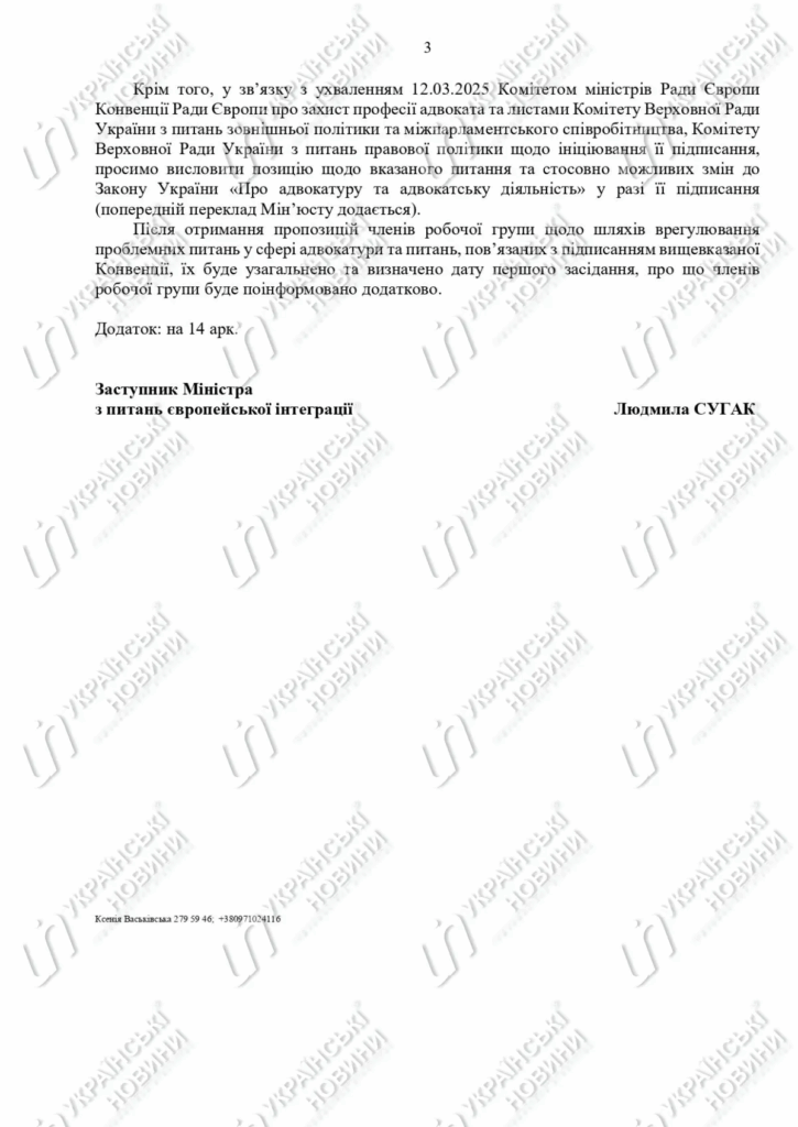 • 5.02.2026 — лист заступниці Міністра юстиції України Л. Сугак.