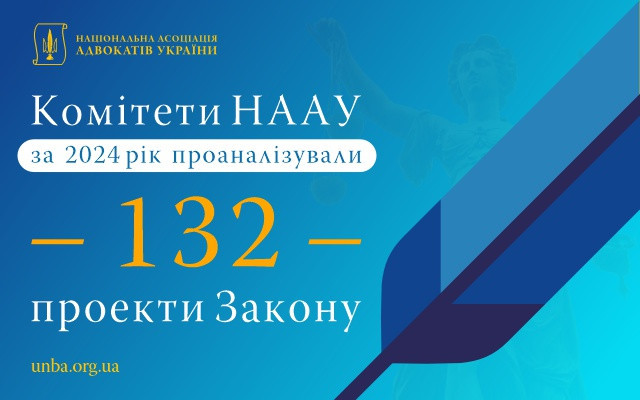 У 2024 році комітети Національної асоціації адвокатів України опрацювали 132 законопроекти, що у 2,4 рази більше, ніж у попередній рік. Зауваження і пропозиції готувалися в рамках запитів профільних парламентських комітетів.